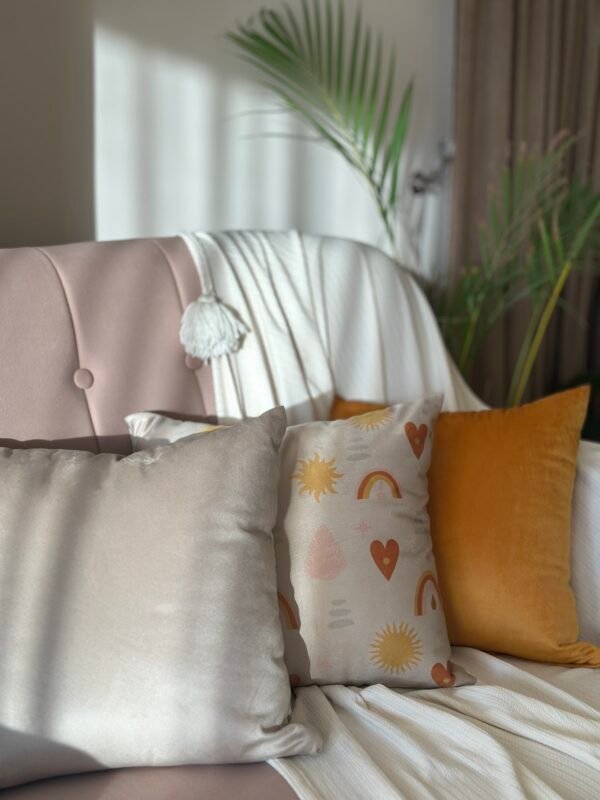 المقاس: 45 × 45 سم لكل كوشن، مقاس مثالي للكنب والسرير.