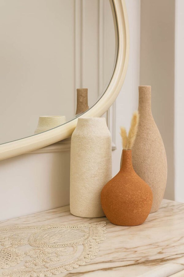 أضف لمسة فريدة لديكور بيتك مع طقم 3 فازات مصنوعة يدويًا من الفخار الطبيعي بجودة عالية.