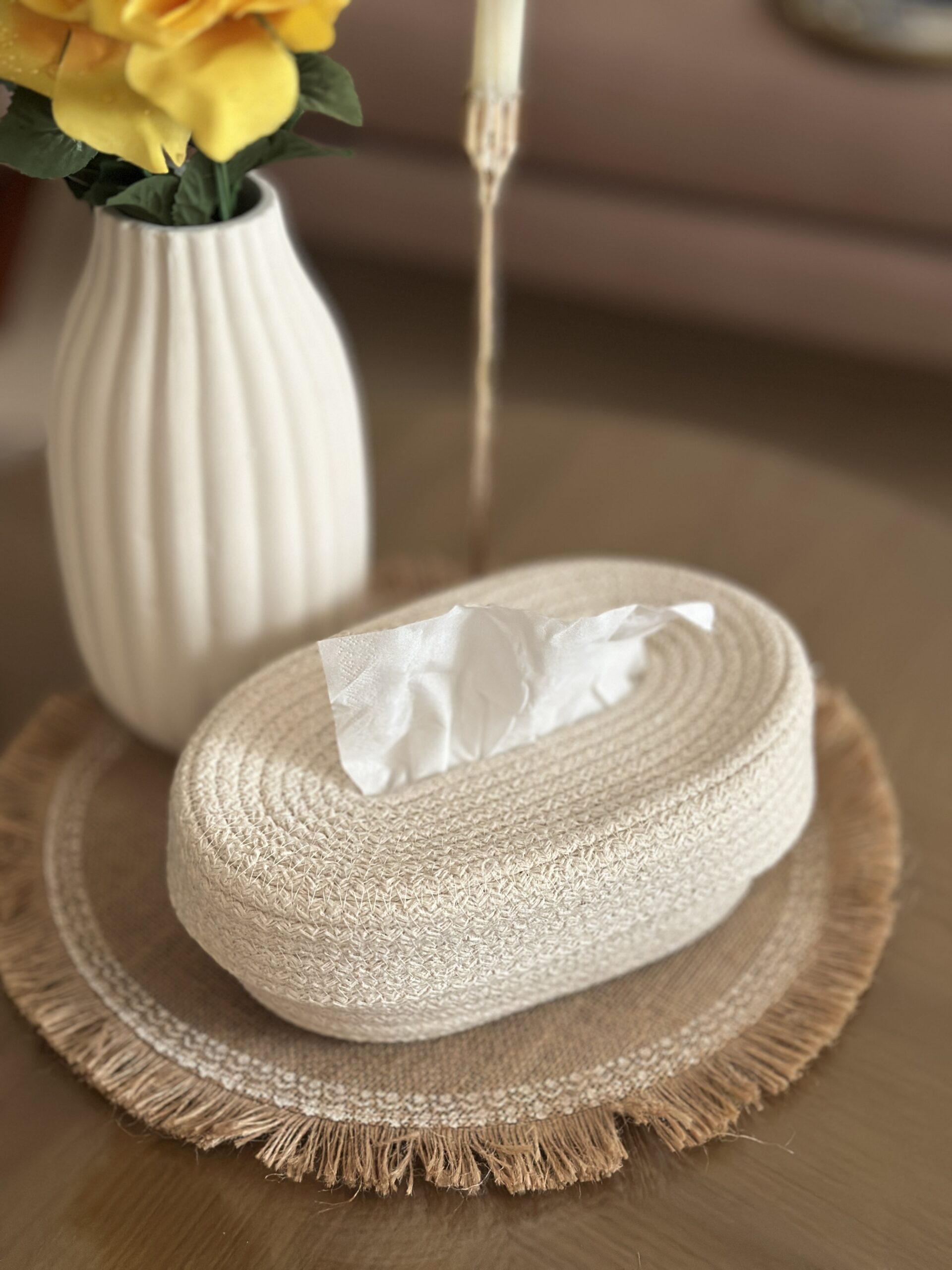 تمت صناعتها بدقة لتكون متينة، محافظة على شكلها، وتُقدّم تجربة استخدام عملية مع فتحة علوية تسمح بسحب المناديل بسهولة بدون فوضى أو انزلاق. المميزات: • مصنوعة من حبال قطنية طبيعية عالية الجودة • تصميم ناعم ومودرن يناسب جميع أنواع الديكورات • فتحة علوية مريحة لسحب المناديل بسهولة • خامة متينة تحافظ على الشكل بدون طي…